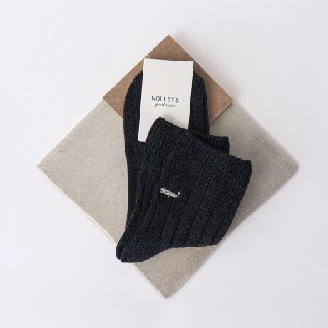 適度に厚みがあって締め付け過ぎないふっくらとしたリブと、くるぶし上にあしらったオリジナルのクジラ刺繍がスタイリングのちょっとしたアクセントになっています。