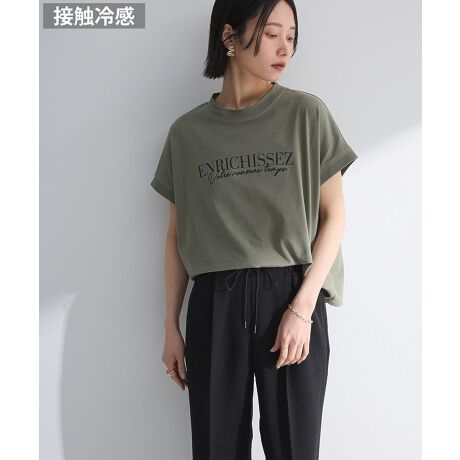 プリントと刺繍を組み合わせた、異なるフォントロゴがポイントのTシャツプルオーバー。ワイドな身幅にコンパクトな丈感が今年らしいデザインです。カジュアルなアイテムながら、フレンチスリーブが女性らしい着こなしを演出。接触冷感性のある綿100%生地で夏の暑い日でも快適に過ごしていただけます。透け感[ややあり]