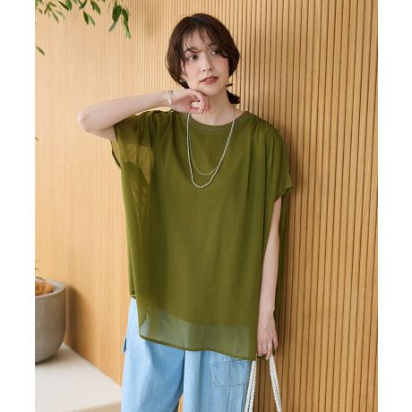 #夏#ドッキングトップス#異素材ミックス#フレンチスリーブ#体型カバー#着痩せ効果#シアー#透け感