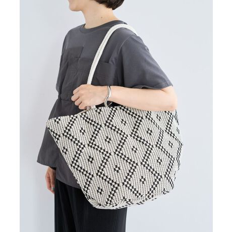 ダイヤパターンが目を惹くトートバッグ。メインポケットは天マグネット仕様で大きく開き、荷物の出し入れもスムーズです。内側ポケット付きで小物も整理でき、しっかりとしたマチで見た目以上の収納力も魅力的。コーディネートのアクセントとしても活躍するおすすめのアイテムです。※モデル着用画像は、光の当たり具合で色味が違って見える場合がございます。※お使いのモニター環境によって商品の色味が違って見える場合がございます。