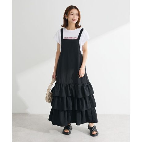 ヘムラインのティアードデザインがキュートなサロペット。バッグゴム仕様でリラクシーに着やすく、リボンで甘口なアクセントを加えました。ショルダーベルトは長さのアレンジが出来るボタン仕付き。合わせるインナー次第でカジュアルからフェミニンまで幅広いスタイルに合わせて着こなしていただけます。透け感[ややあり]