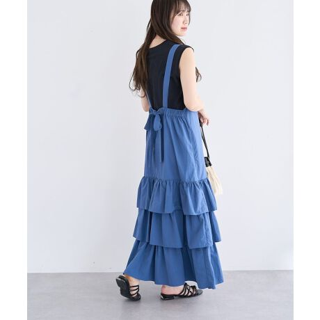 ヘムラインのティアードデザインがキュートなサロペット。バッグゴム仕様でリラクシーに着やすく、リボンで甘口なアクセントを加えました。ショルダーベルトは長さのアレンジが出来るボタン仕付き。合わせるインナー次第でカジュアルからフェミニンまで幅広いスタイルに合わせて着こなしていただけます。透け感[ややあり]
