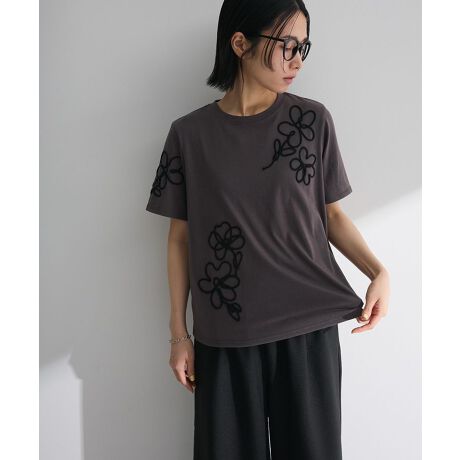 コーディネートを華やかに演出するコード刺繍Tシャツ。カジュアルなカットソーに施したフラワー刺繍が女性らしいアクセントをプラスします。通気性、伸縮性に優れたコットンベース素材を使用することで暑くなる季節も快適な着心地を実現。落ち着きのあるトーンで甘くなりすぎず、デイリーに活躍してくれるおすすめのアイテムです。透け感[ややあり]