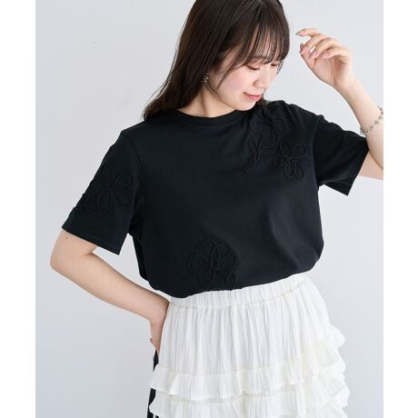 コーディネートを華やかに演出するコード刺繍Tシャツ。カジュアルなカットソーに施したフラワー刺繍が女性らしいアクセントをプラスします。通気性、伸縮性に優れたコットンベース素材を使用することで暑くなる季節も快適な着心地を実現。落ち着きのあるトーンで甘くなりすぎず、デイリーに活躍してくれるおすすめのアイテムです。透け感[ややあり]
