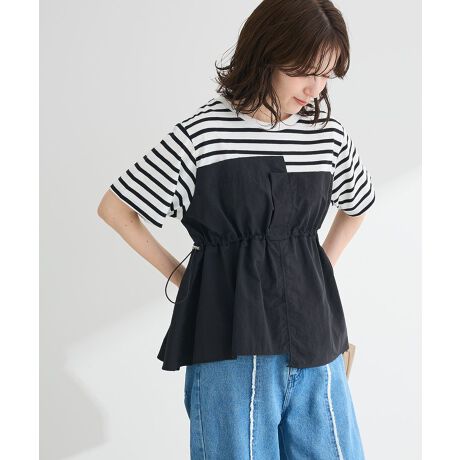 #ビスチェ#レイヤード#ドロスト#半袖#異素材ミックス#体型カバー#ボーダー#夏#着回し