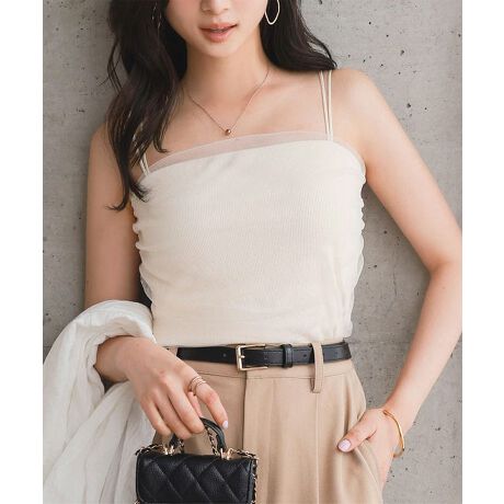 繊細なチュールを重ねた、上品で甘さのあるカップ付きキャミソール。