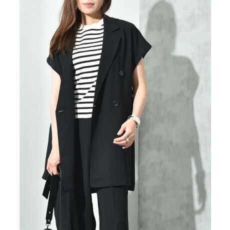 少し長めの着丈で縦のラインが強調されるため、スタイルアップ効果も◎ボトムスや体系を選ばず着まわしやすいサイズ感にこだわった1枚です。ダブル前の洗練されたシルエットは女性らしく、インナーも合わせやすいのがポイントです。デイリーはもちろん、きちんと感はしっかりキープされているので、オフィススタイルにも良く合います。肩の力を向いた印象も演出できるバランスの良いアイテムです。