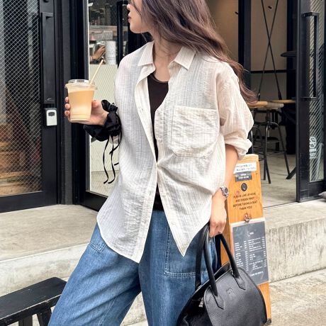 ・程よい透け感が抜け感を演出し、インナーとのレイヤードでさまざまな着こなしが楽しめます