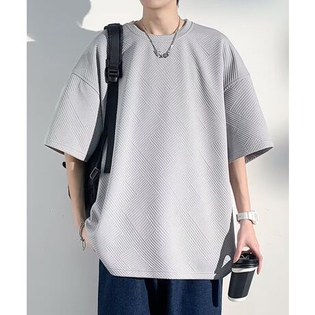 【トレンドのジャガード オーバーサイズ クルーネック ビッグTシャツ】