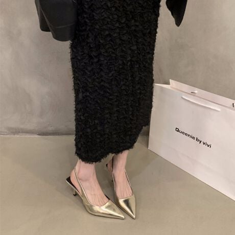 オフィスにもお出かけにもぴったりなバックストラップヒールパンプス