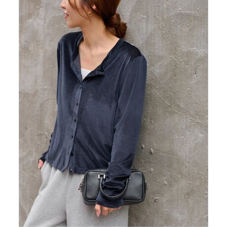 薄手でストレッチの効いたベロアを使用したカーディガン。