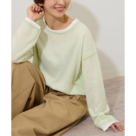 カットソーをレイヤードさせたトレンド感のあるアイテム。