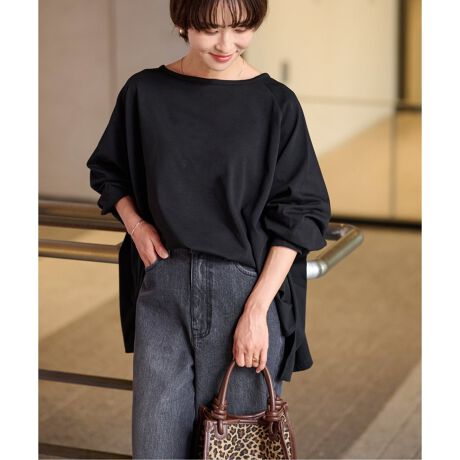 ポンチョのようなワイドシルエットで、ベーシックながらも着映えするトップスです。