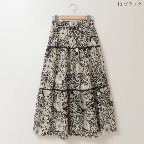 オリエンタルな雰囲気漂う花柄ティアードスカート。