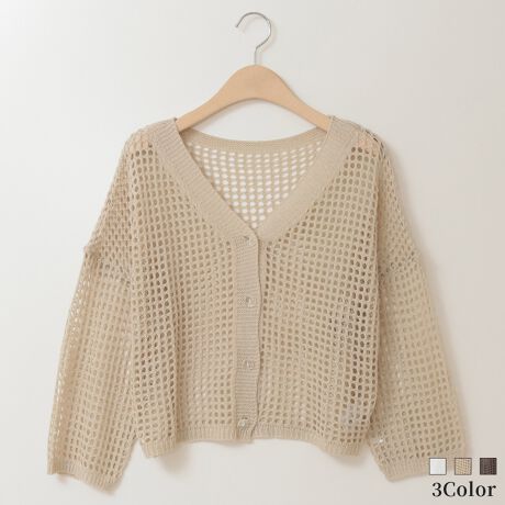 メッシュ編みライトニットカーディガン[14952213]