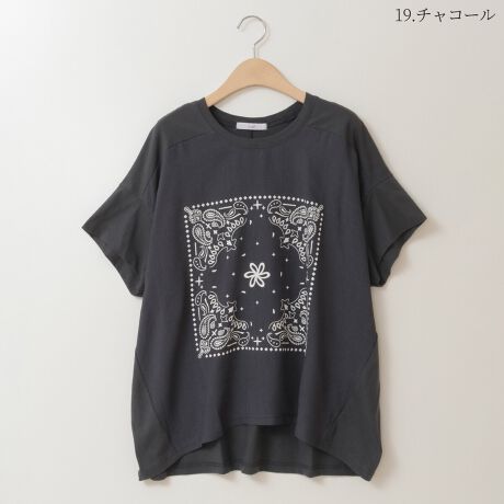 バンダナプリントオーバーシルエットTシャツ[14951175]