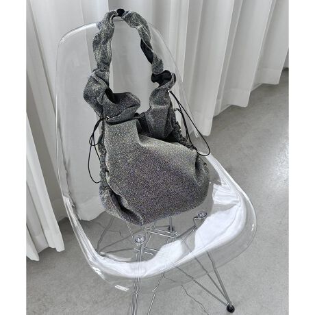 ・ラメ糸が編み込まれた生地で仕立てたショルダーバッグ。
