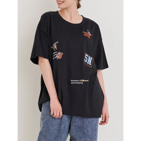 ワッペンやロゴ刺しゅうを散りばめたポップなデザインがアクセントをプラスするTシャツ。
