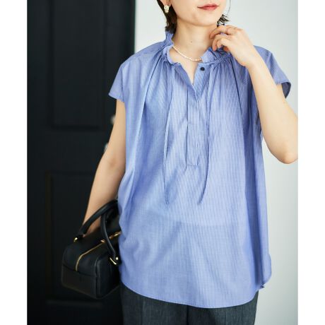 襟もとのフリルデザインが目を惹くブラウス。