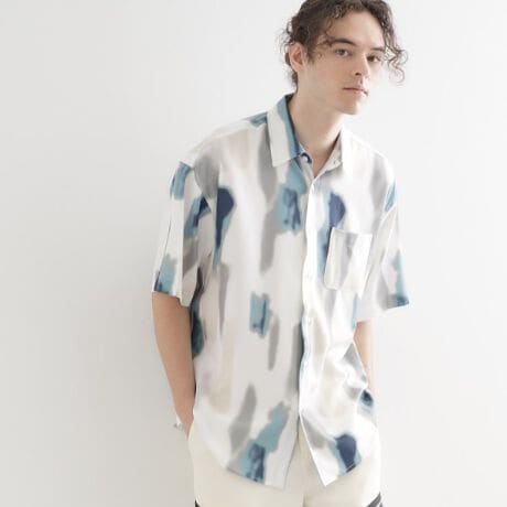 オリジナルのブラー柄がプリントされた半袖シャツ。