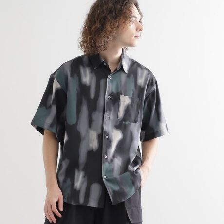 オリジナルのブラー柄がプリントされた半袖シャツ。