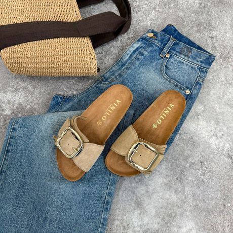【VINILO/ヴィニーロ】スエードフリンジバックルスライドサンダル