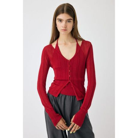 【SHEER CABLE CARDIGAN / シアーケーブルカーディガン】■ポイント&ディテールシャリっとした清涼感のある素材を使用した、夏にぴったりの軽やかなニットカーディガン。繊細な透け感が魅力のケーブル編みが、涼しげでありながら表情豊かな印象を演出します。肌離れのよいドライタッチな質感で、暑い季節でも快適な着心地。程よくゆとりのあるシルエットと、抜け感のあるデザインが魅力です。同素材のホルターネックキャミソールとのセットアップもおすすめ。■スタイリング羽織るだけでシーズンムードが高まる一枚は、タンクトップやキャミソールの上にさらっと重ねるだけで様になります。同素材のキャミソールと合わせてセットアップとして着用すれば、涼しげで統一感のある大人のサマースタイルに。デニムやワイドパンツなど、カジュアルなボトムとの相性も抜群です。透け感を重視したニット製品になります。細い糸を透け感があるように編んでい為、非常にデリケートな製品です。着用時のひっかけに注意ください。■生地透け感:有裏地:無伸縮性:有光沢感:無■商品のお気に入り登録お気に入りアイテムの再入荷・在庫1点などの通知を受け取ることができます。■ブランドのお気に入り登録新作アイテムの入荷や人気アイテムの再入荷、おすすめトピックスなど、いち早くブランドの情報を受け取ることができます。[注意事項]※画像の商品はサンプルです。実際の商品と仕様、加工が若干異なる場合があります。※画像の商品は光の照射や角度、お使いのモニター環境により、実物と色味が異なる場合がございます。※着用、お取り扱いの際は、アテンションタグをご確認ください。