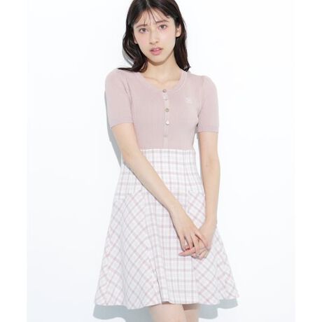 清涼感のあるドライタッチなリブニットと、シアー感のあるサマーツイードのミニスカートをドッキングしたワンピース。一枚できちんと感がでるラクちんワンピースは、胸元の同色リンクJ刺しゅうがポイント。薄手でざっくりとした透け感のあるサマーツイードが夏にぴったりなデザインです。※撮影時照明の関係により、色味が違って見える場合がございます。またパソコン・スマートフォンなどの環境により、若干製品と画像のカラーが異なる場合もございます。予めご了承ください。商品の色味は、商品単品画像をご参照下さい。※商品画像はサンプルのため、色味やサイズ等の仕様に変更がある場合がございますので、予めご了承ください。