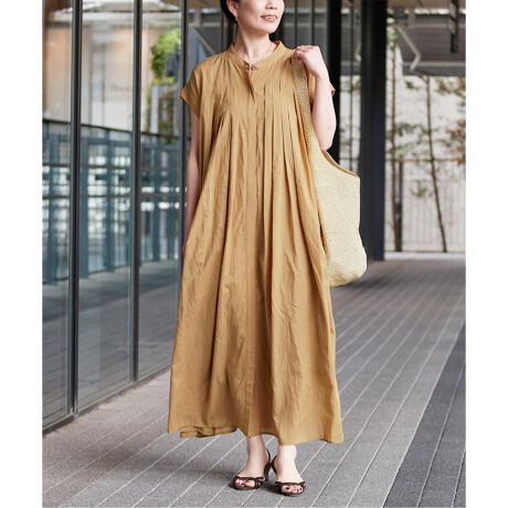 レーヨンコットン素材を使用した柔らかな肌触りと軽い着心地で暑い時期にも着用しやすく、フレンチスリーブとフロントの細めのタックが上半身をすっきりと見せてくれます。羽織としても着用できるのでスタイリングの幅が広がるアイテムです。
