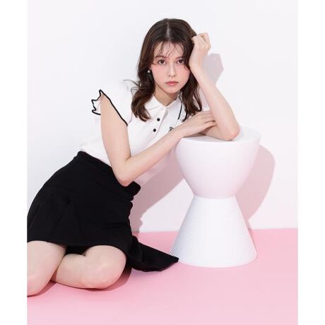 フリル袖ポロニット