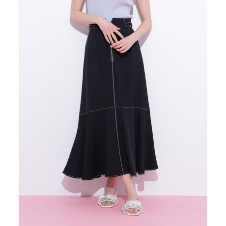 配色ステッチがアクセントになったフロントファスナー付きマーメイドスカート。体のラインを美しく見せるマーメイドシルエットに、メリハリのある配色ステッチを効かせて、シンプルながらも印象的なデザインに仕上げています。コンパクトトップスやTシャツ合わせは勿論、オーバーサイズのスウェットやシャツとも好相性。フェミニン×カジュアルのミックスコーデが楽しめる万能スカートです。※撮影時照明の関係により、色味が違って見える場合がございます。またパソコン・スマートフォンなどの環境により、若干製品と画像のカラーが異なる場合もございます。予めご了承ください。商品の色味は、商品単品画像をご参照下さい。※商品画像はサンプルのため、色味やサイズ等の仕様に変更がある場合がございますので、予めご了承ください。