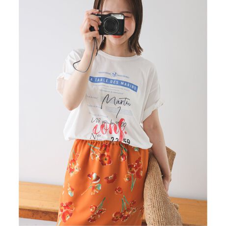 無地のボトムはもちろん、柄ものアイテムとも組み合わせやすいTシャツです。