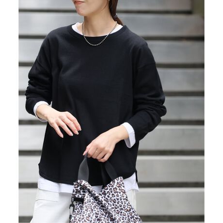 カットソーをレイヤードさせた