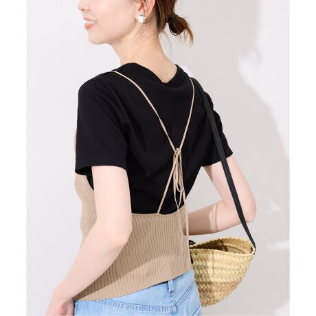 ・背中がざっくりと開いたデザインが特徴のリブニット。