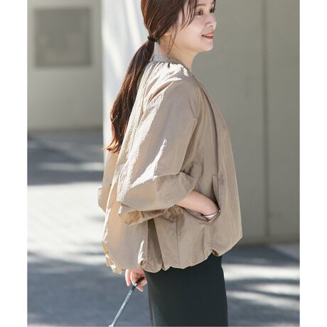 襟元や裾に施されたギャザーがポイントの上品なブルゾンが登場。
