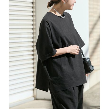 麻混で清涼感がありつつ、キレイ目に使える素材感。ストレッチ性があり、柔らかい手触りで着心地も抜群です。さらっと着られるスクエア型のポンチョブラウス。ボリュームがあるので風が抜け、暑い時期でも涼しく着られます。同素材の定番パンツとセットアップの着こなしもおすすめです(ブラックのみ同素材でパンツがございます)。オンオフ問わず便利に着まわせる1枚です。