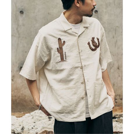 ウエスタンムード漂う刺繍が魅力のオープンカラーシャツ。