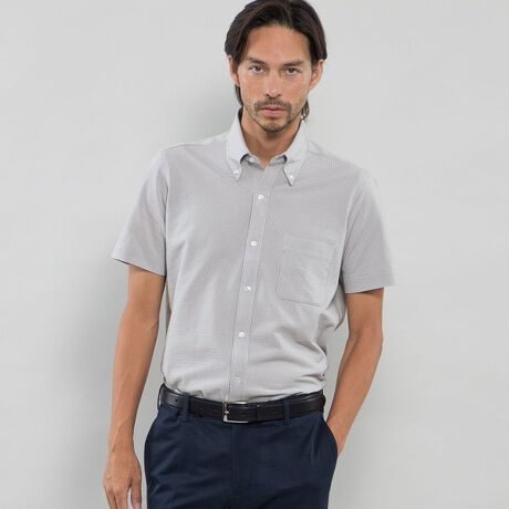 綿とポリエステルを交編した清涼感のあるサッカー生地を表現したジャージ素材を使用。ストレッチ性があり、着心地の良い素材に仕上げています。オンオフ問わず、オールシーズンご着用いただけます。