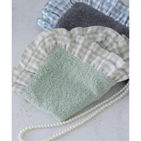 タオル地にリネンのフリル使いのコンビネーションの愛らしさは、持っているだけで気分が上がるアイテム。