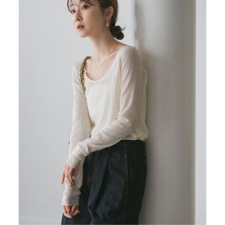 透け感も強すぎず、ジャケットやカーディガンのインナーや一枚着としても使いやすい素材感です。