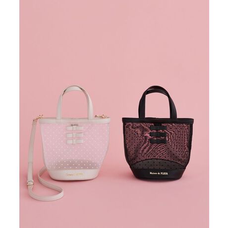 【2WAY仕様】フロッキードット×リボンが大人可愛いメッシュトートバッグ。