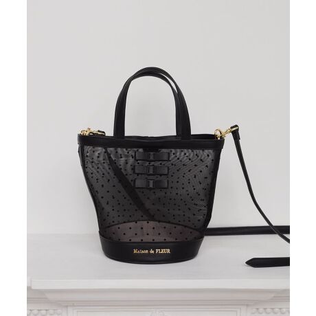 【2WAY仕様】フロッキードット×リボンが大人可愛いメッシュトートバッグ。