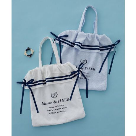 上品なジャカード生地にネイビーのラインでマリンテイストに仕上げたトートバッグ。