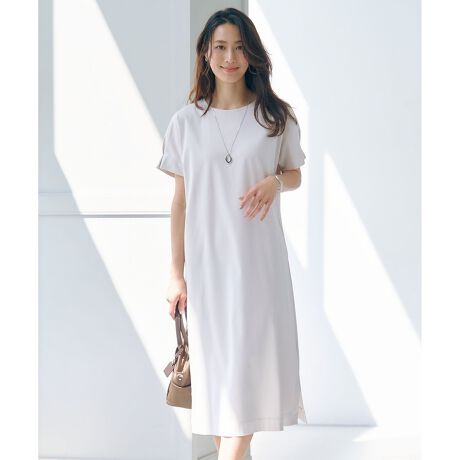 ■デザインストンとした落ち感のあるシルエットで、肩回りに程よいゆとりを持たせたドルマンスリーブワンピース。袖口のタックがさりげない立体感を生み、肩回りをカバーしてくれます。両裾のスリットが軽やかな抜け感をプラスし、足さばきも快適です。ポケット付きで実用性もあり、暑い季節に1枚着るだけでサマになる頼れるアイテムです。アクセサリーや小物を変えるだけで、カジュアルからきれい目まで自在に着こなせるのも魅力です。カラーは柔らかなニュアンスのあるグレージュ(#003)、落ち着きのあるダークブラウン(#035)、爽やかな透明感のあるアクアグリーン(#061)、シーンレスに活躍するネイビー(#075)の4色で展開します。