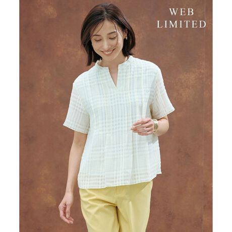 ■素材糸の収縮差によって自然な凹凸感を出した、シアーサッカー素材を使用。清涼感のある細やかな表面感が肌に心地よく、繊細な風合いの中にほんのりと浮かぶ大きめのシアーチェック素材が映える素材になっています。