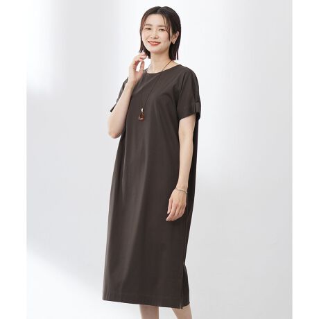 ■デザインストンとした落ち感のあるシルエットで、肩回りに程よいゆとりを持たせたドルマンスリーブワンピース。袖口のタックがさりげない立体感を生み、肩回りをカバーしてくれます。両裾のスリットが軽やかな抜け感をプラスし、足さばきも快適です。ポケット付きで実用性もあり、暑い季節に1枚着るだけでサマになる頼れるアイテムです。アクセサリーや小物を変えるだけで、カジュアルからきれい目まで自在に着こなせるのも魅力です。カラーは柔らかなニュアンスのあるグレージュ(#003)、落ち着きのあるダークブラウン(#035)、爽やかな透明感のあるアクアグリーン(#061)、シーンレスに活躍するネイビー(#075)の4色で展開します。