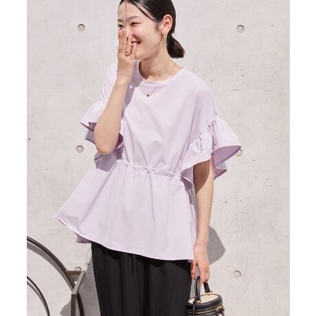 ウエスト切り替えのペプラムデザインなので、両サイドに施されたドローコードを絞ることで、気になるウエスト周りもすっきりと見せてくれます。透け感[ややあり]