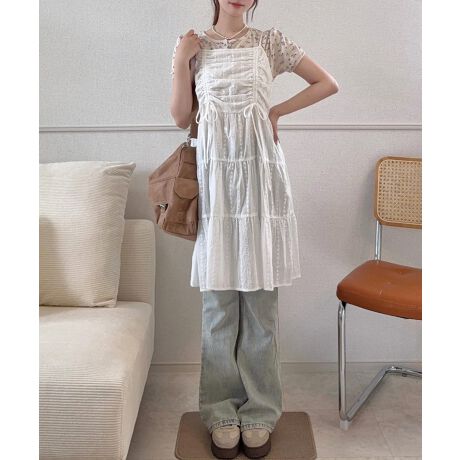 綿レースドロストミニワンピース