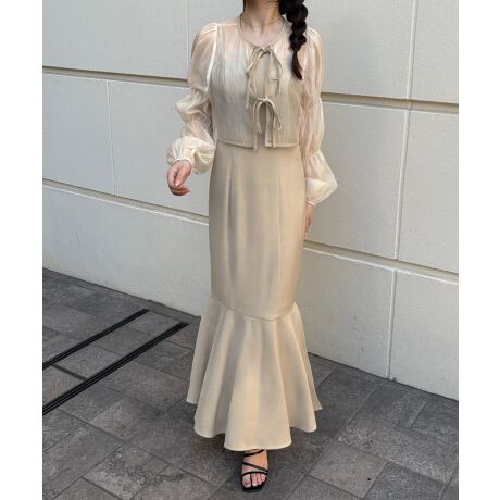 シアーショートリボンボレロ+マーメイドキャミワンピース set