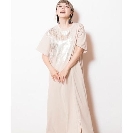 胸元の箔プリントが、アクセサリーの様に華やかなTシャツワンピース。